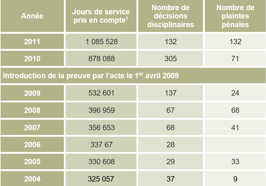 Au cours de l’année 2011, l’Organe d’exécution du service civil (aujourd’hui : Office fédéral du service civil) a déployé un nouveau système de contrôle de gestion qui a permis d’affiner les données statistiques à partir de 2012.
