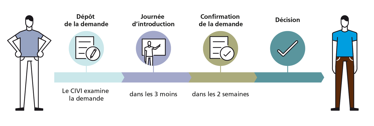 © CIVI Vous devez déposer votre demande dans ZiviConnect. Dans les 3 mois qui suivent, vous devez suivre une journée d’introduction. Le nombre de places est limité et le temps d’attente peut être de plusieurs semaines.